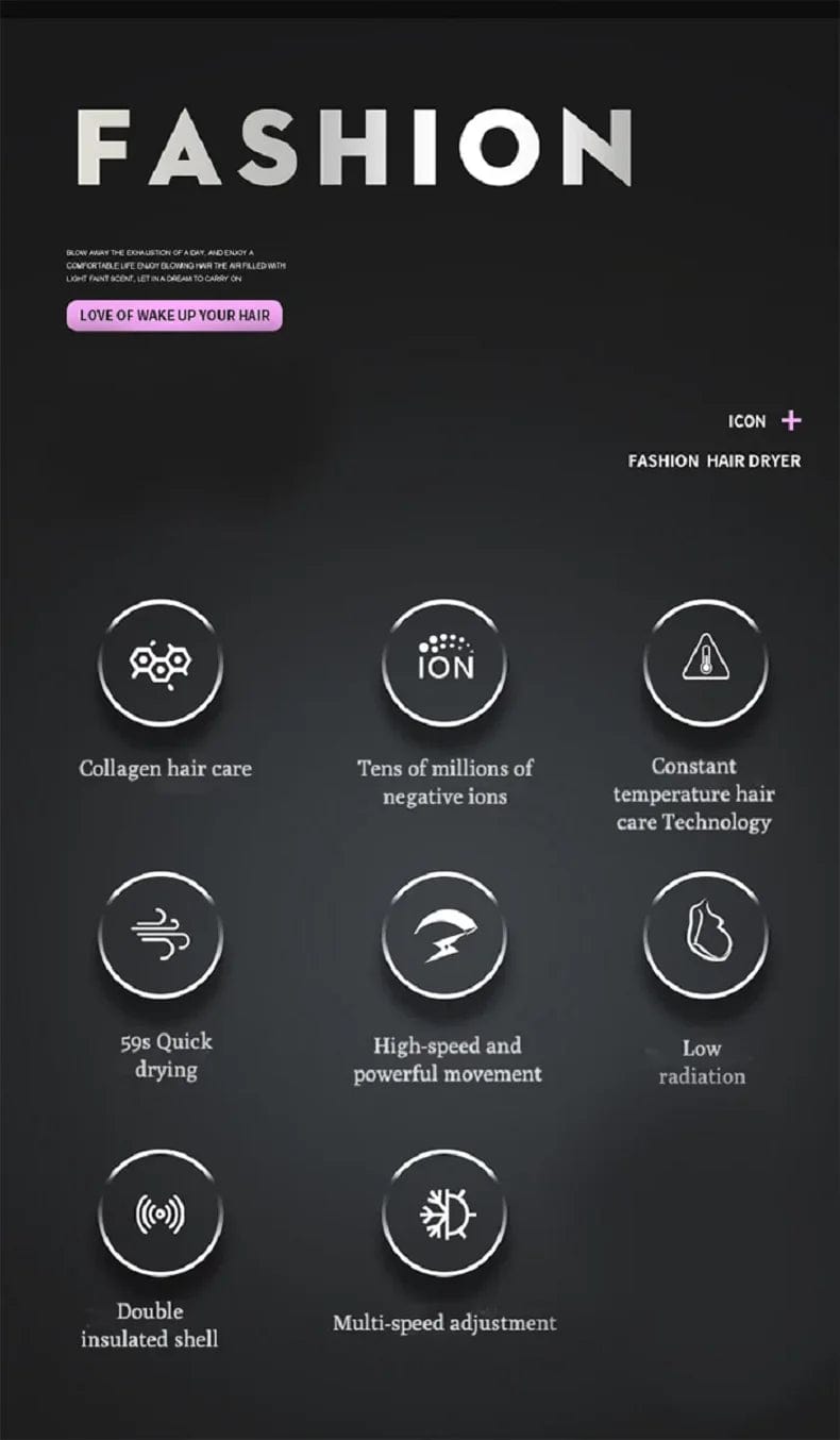 .The modulated brushless motor with low noise can bring a pleasant blowing experience.