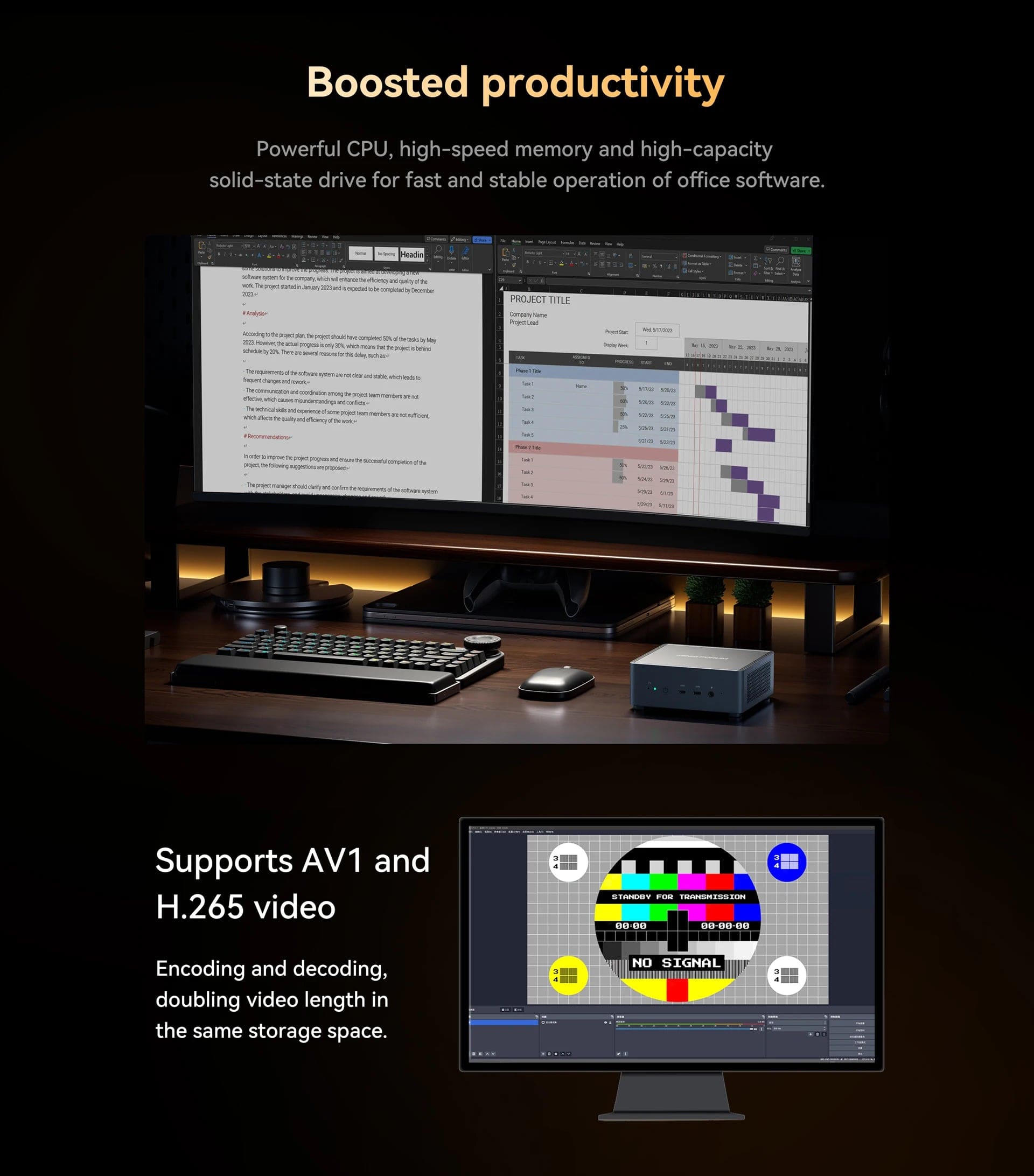 UM790 Pro comes with WIFI 6E and BT5.3, offering a dual advantage: high-speed networking and swift connectivity. With an unparalleled 2.4Gbps transfer speed, indulge in faster downloads, uploads, and streaming experiences. The extensive coverage of WIFI 6E ensures a stable connection in any environment. Meanwhile,BT5.3 provides efficient, rapid Bluetooth connections for devices. The UM790 Pro provides you with a superior network performance experience.