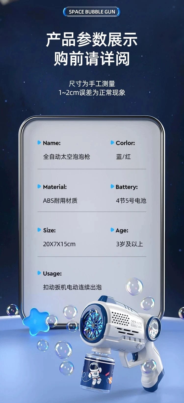 Model Number: Space Astronaut Bubble Gun