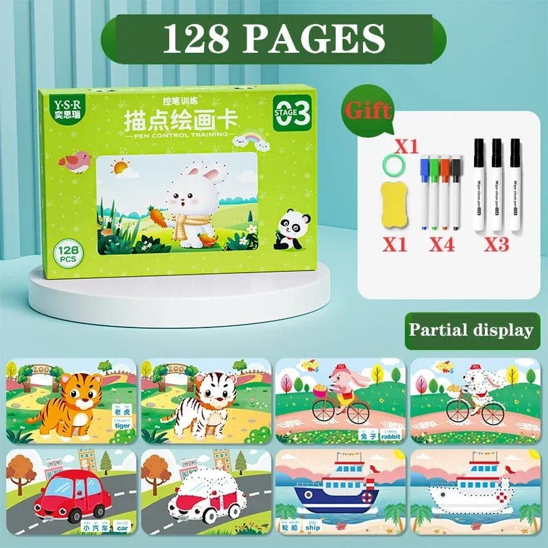 1. This extensive kindergarten and pre-school exercise book including coloring pictures and cognitive games offers varied exercises to support the fine motor skills, concentration and hand-eye co-ordination.