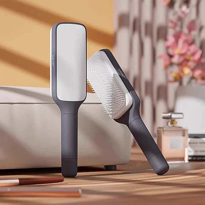 1. Just rotate the handle and the comb will immediately release all hair and debris. Dandruff and dry scalp promote scalp health and hair growth. The easy-to-use handle ensures that it does not slip out of your hand.