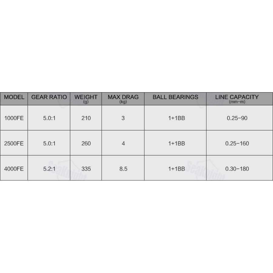 Braid Capacity(1000/2500/4000): 10kg/95m ; 10kg/170m ; 15kg/265m