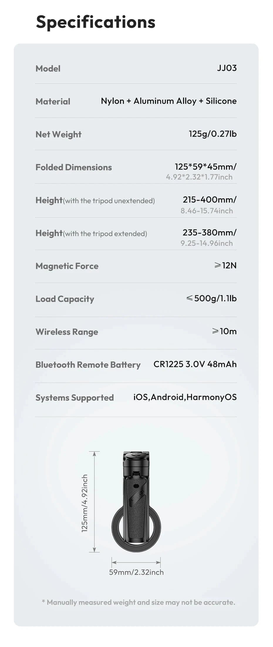 Ulanzi JJ03 Magnetic Phone Tripod Wireless Phone Grip Selfie Stick Desktop Tripod