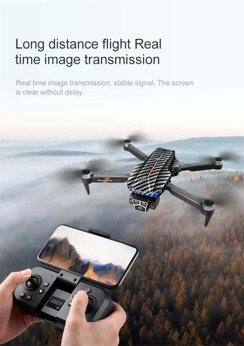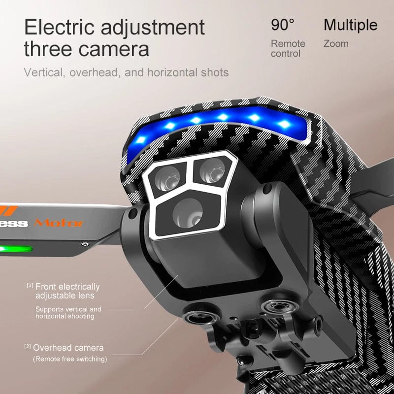 2.4G gradient flowing light optical flow brushless built-in four sided obstacle avoidance folding drone with three lens WIFI professional aerial camera, small-sized with servo gimbal, cool lighting